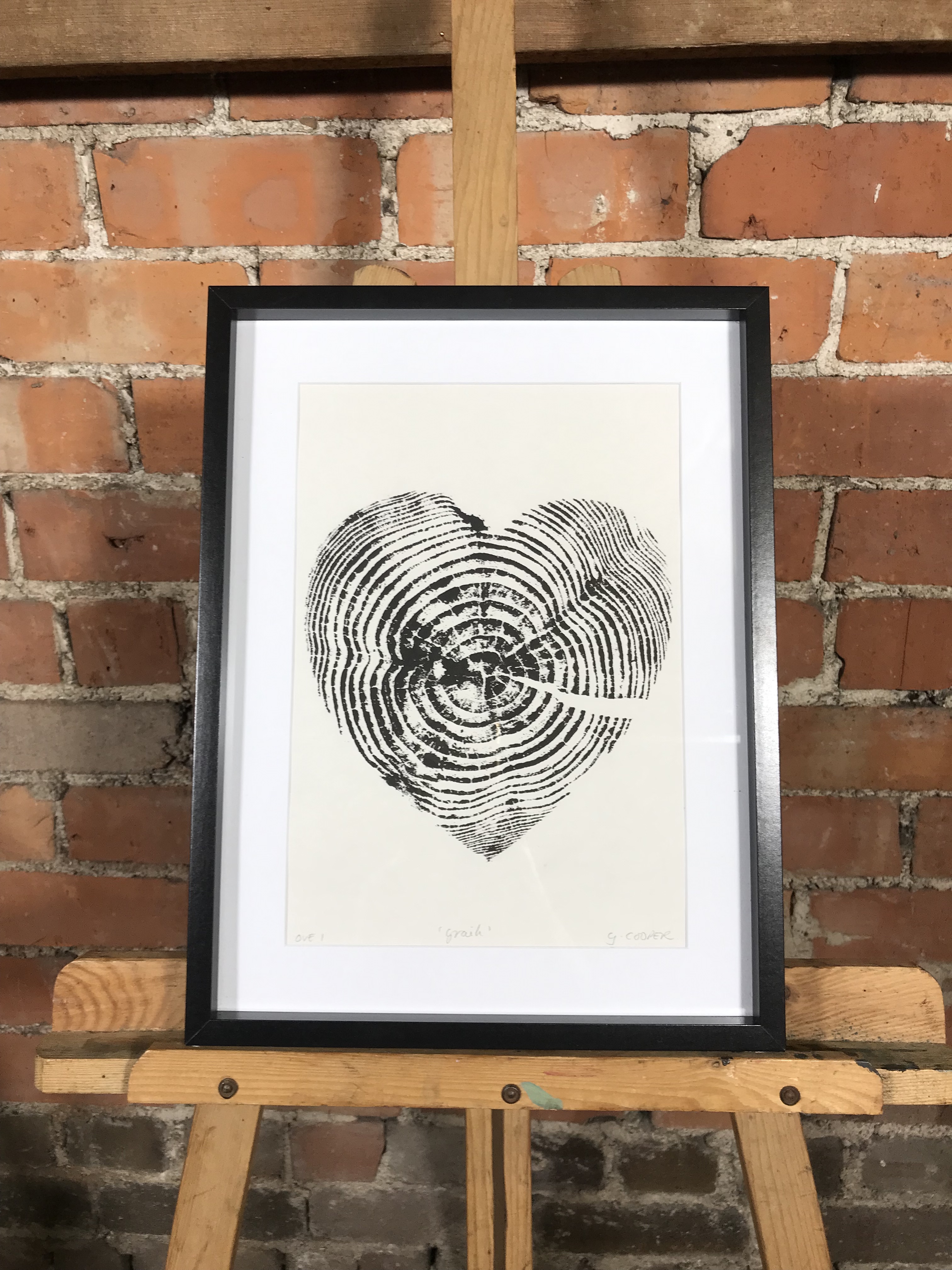 'Graih' - meaning 'love' in Manx. Original spruce tree print in black, 30 x 40cm framed £48 (sold but I can take orders)