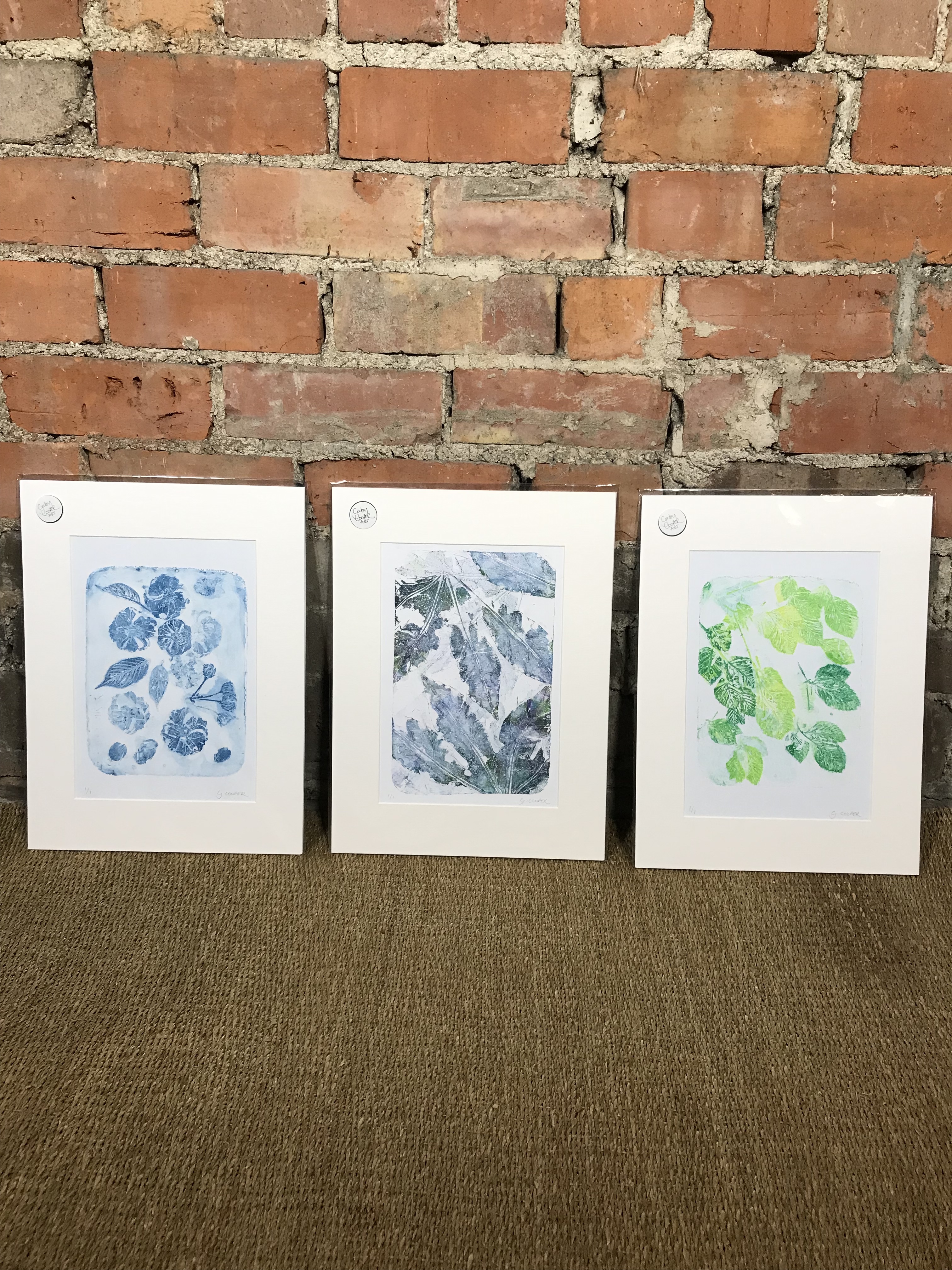 Leaf print trio - original hand made leaf prints 30 x 40cm £32 each