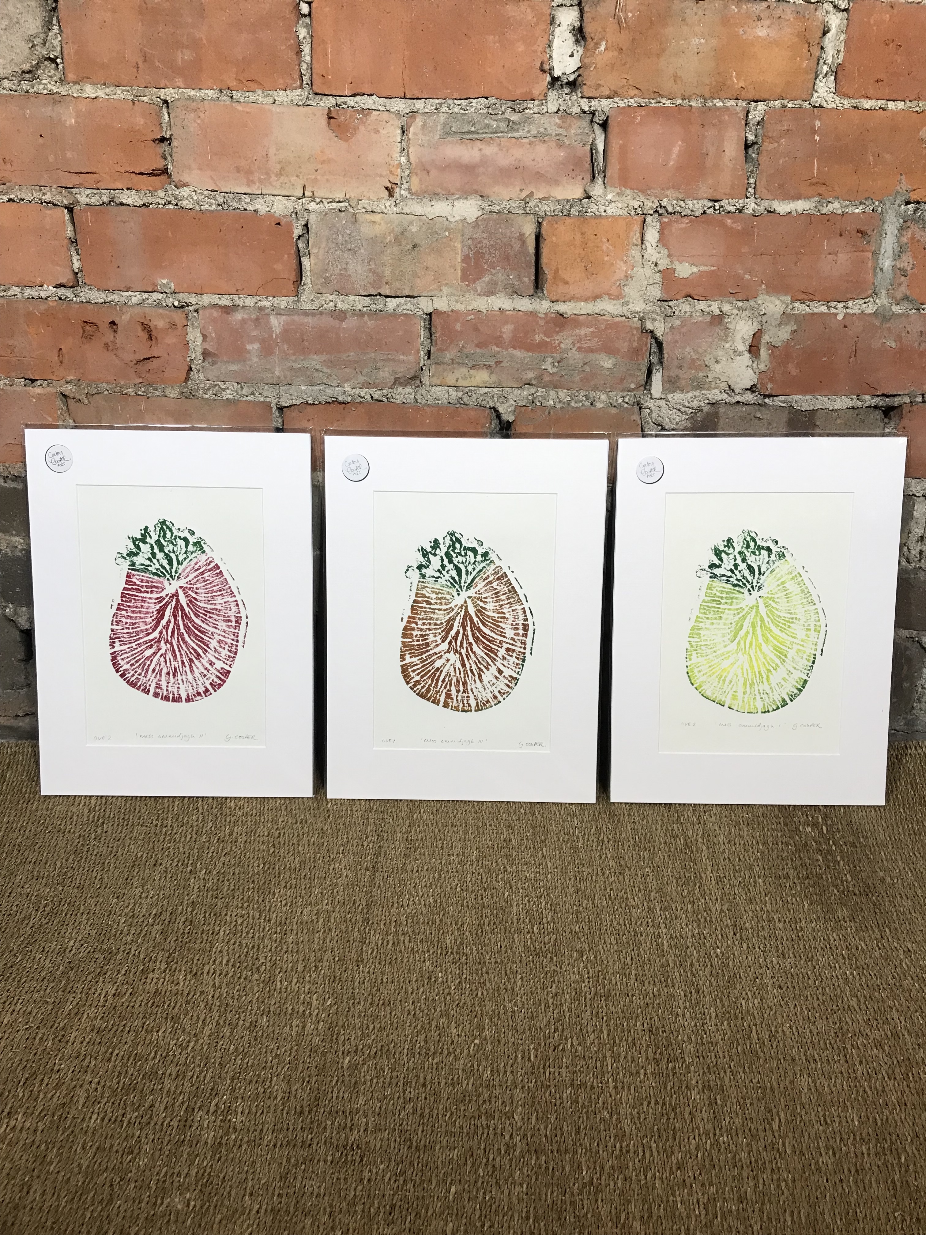 Beech tree print trio - 'mess ommidjagh' meaning 'foolish fruit' in Manx. Original hand printed beech tree print. 30 x 40cm £32 each (yellow version sold but I can take orders)