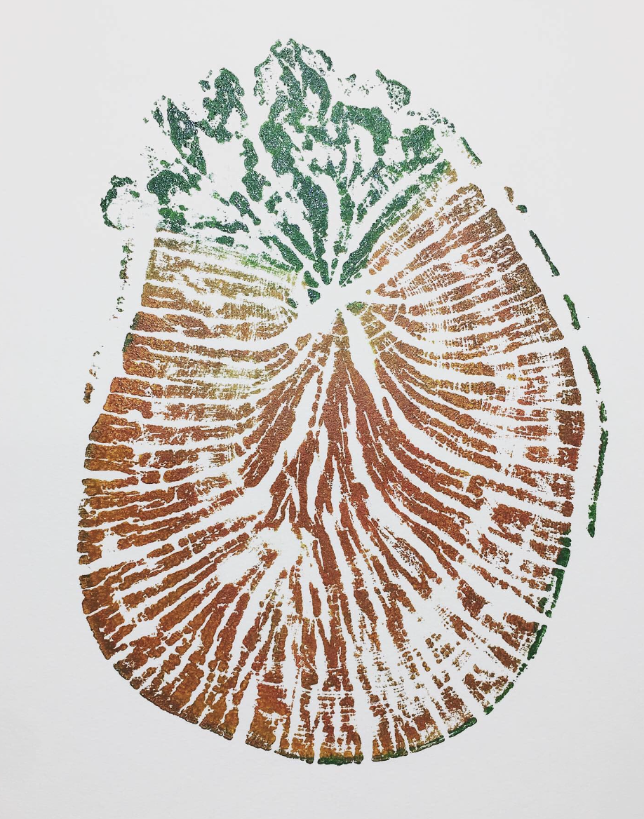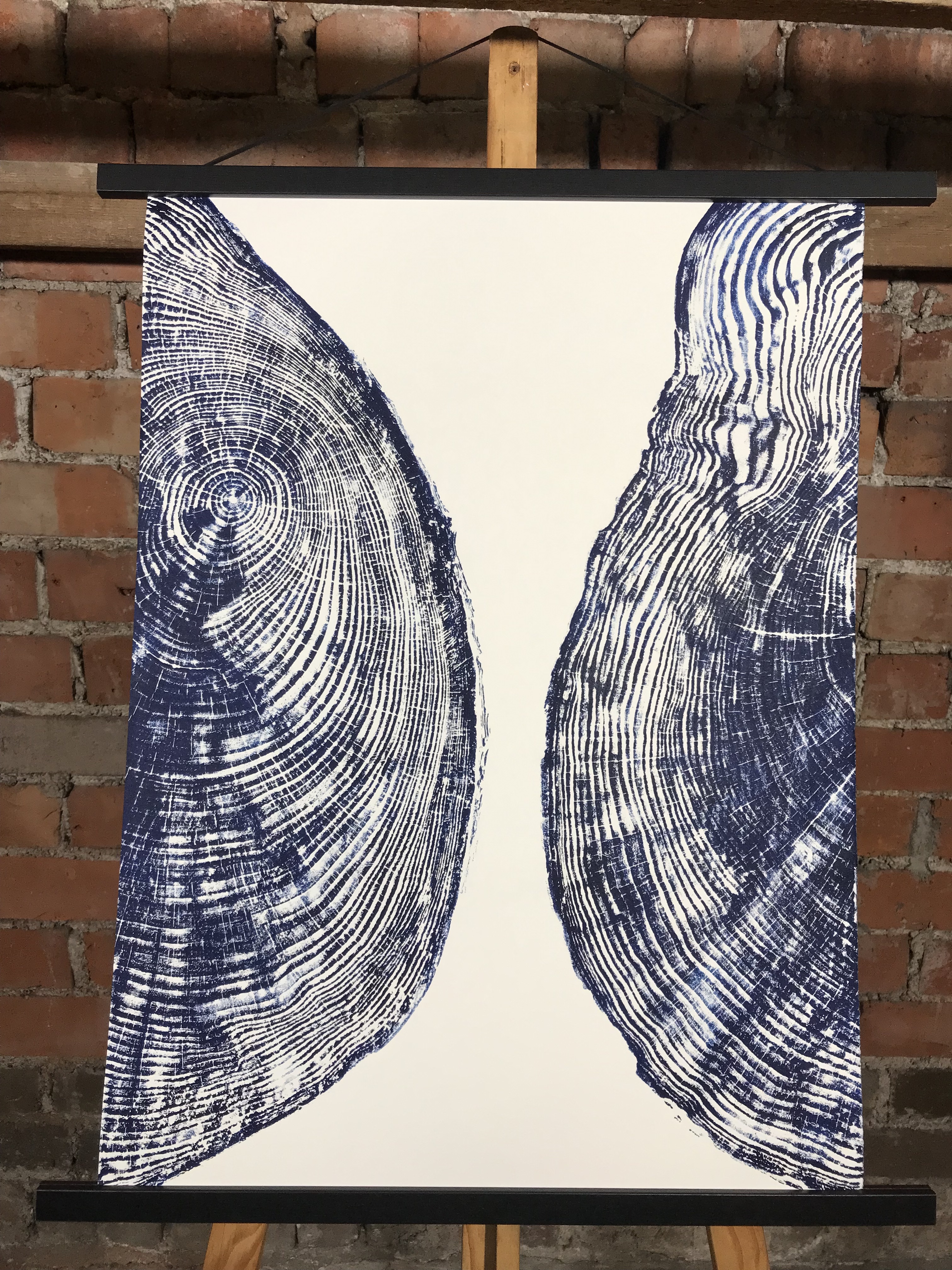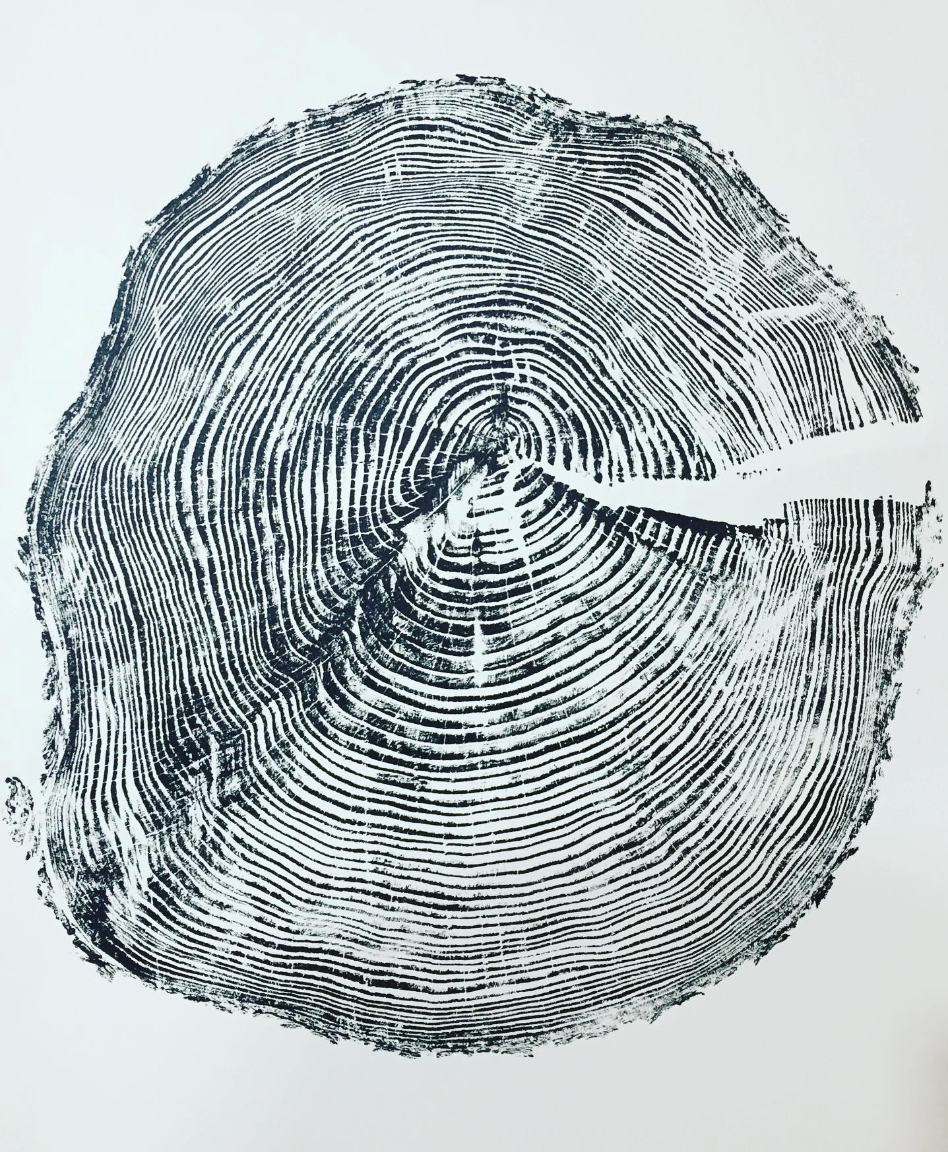 I was devastated by the loss of such a magnificent tree and resolved to try to commemorate it in some way. So began my beech tree printing project, as I produced tree ring prints from a number of different sections of the tree. Each print is uniquely different and celebrates the long life of our great tree. From that point I continued to print different species, finding it fascinating to see each tree's story and characteristics revealed in print. I've been fortunate to exhibit my work here on the Isle of Man and have enjoyed meeting new people, talking about my work, sharing my process through workshops, and exploring new creative opportunities.