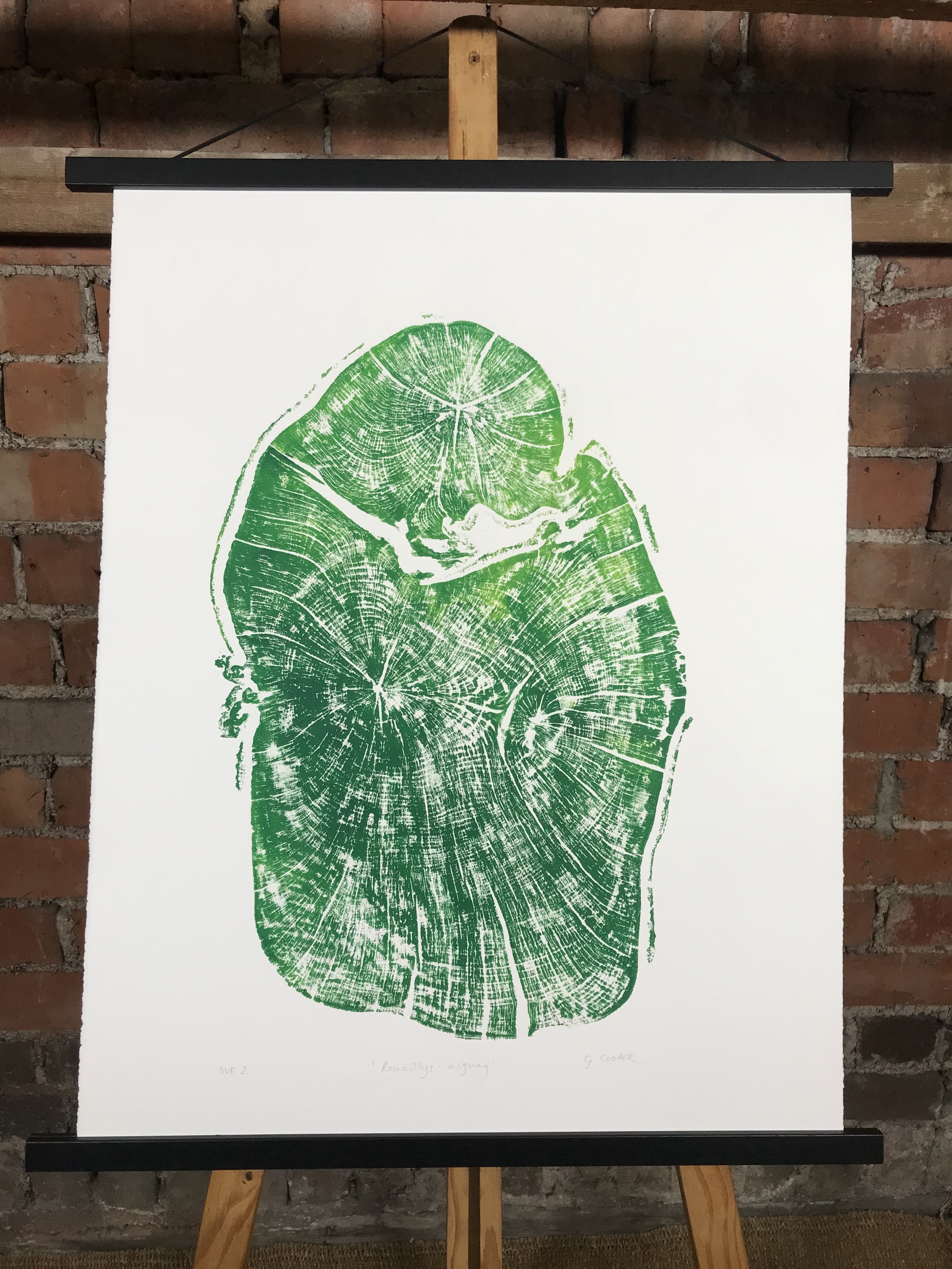 Welcome to this pop up gallery of my work as Gaby Cooper Art! I produce original hand made nature prints taken directly from leaves and trees. This particular creative journey began with the felling of our 120 year old beech tree which was diseased.
