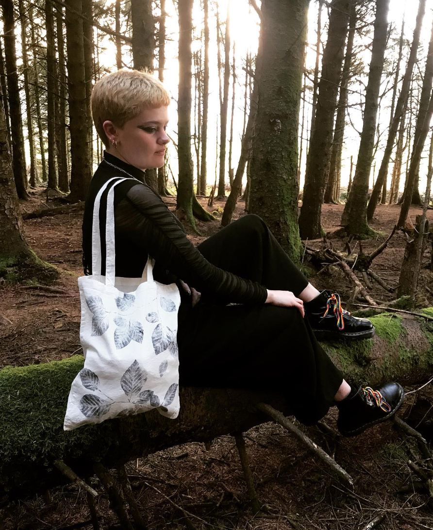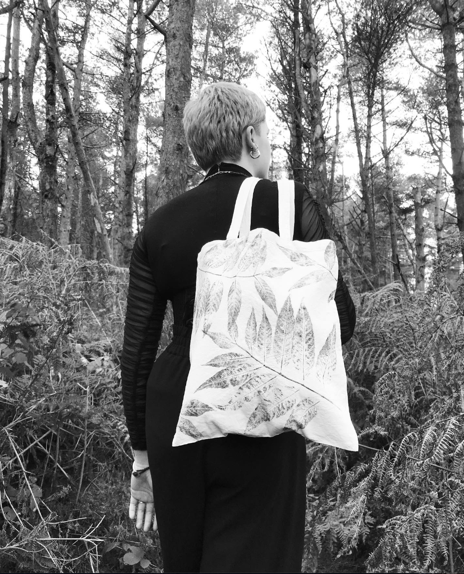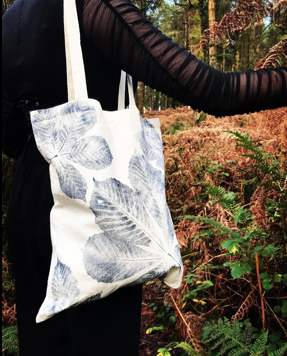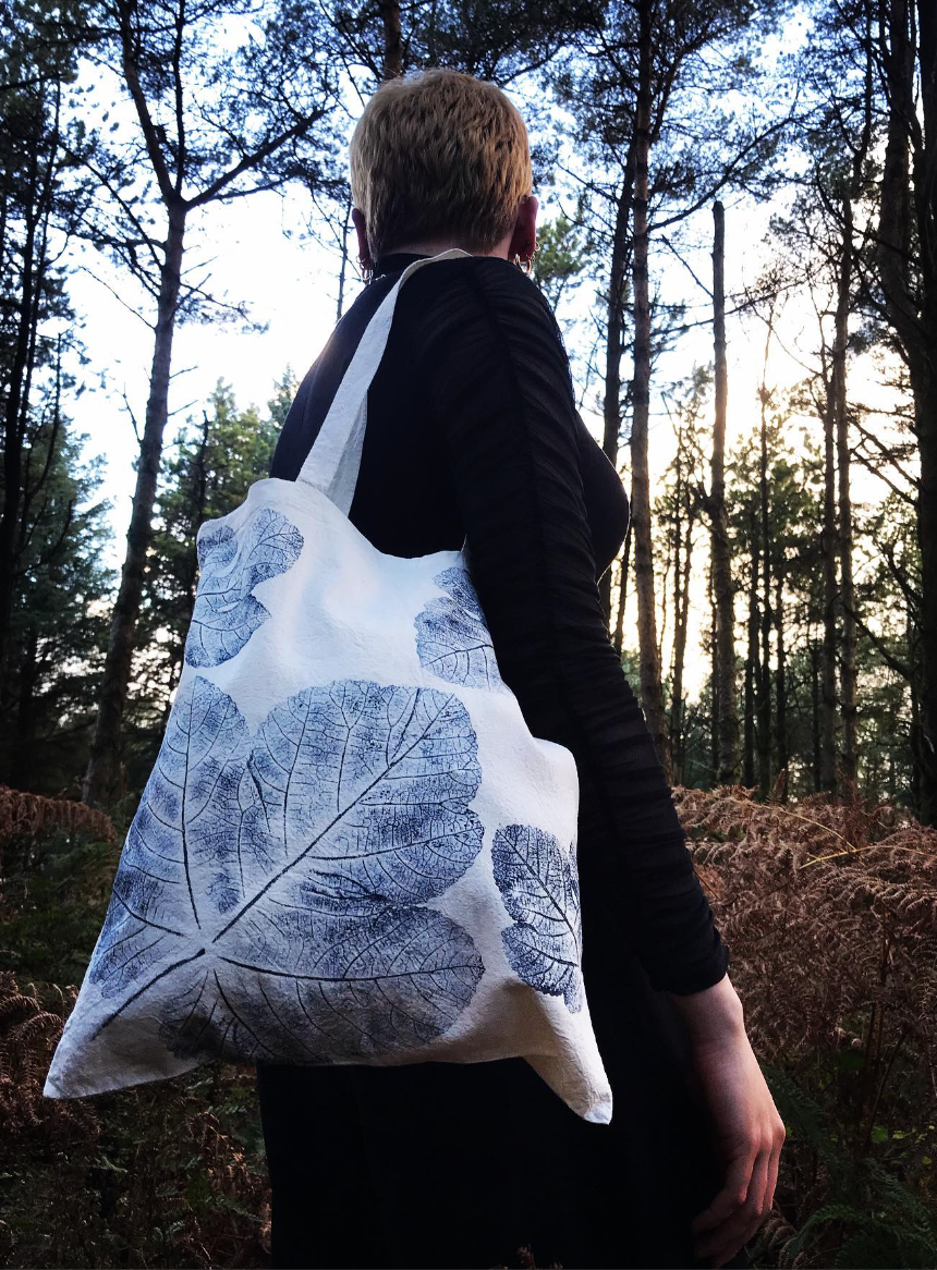 Selection of 100% cotton tote bags hand printed with fig, ash or maple leaves £10 each